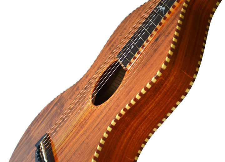 A weissenborn constructed from the highly sought-after Koa tonewood, used for its highly figured aesthetic and naturally warm tone. This instrument is designed to develop alongside the player, with the dense Koa gradually opening up to reveal an expansive midrange and an increasingly rich, more resonant tone. Stylistically, this Weissenborn pays homage to the origins of Koa wood, with a traditional Hawaiian style rosette and rope bindings. Available in both laminate and solid top models, the Koa Edition Weissenborns are beautifully crafted with a hard-wearing ebony fretboard for increased sustain, and a genuine bone nut and saddle for undeniable tone.
